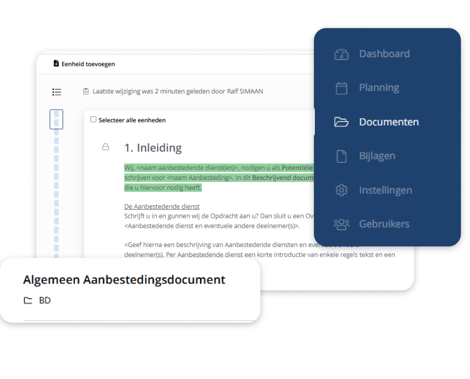 Inkopers hoeven niet langer te zoeken naar het juiste format of twijfelen of een tekst nog actueel is. Dit geeft rust in het proces en meer tijd om te focussen op de inhoud van de aanbesteding in plaats van op documentbeheer.