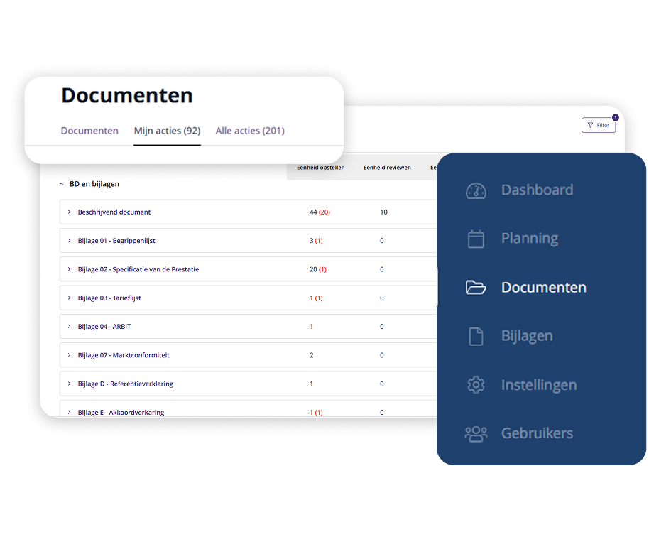 Doordat dezelfde teksten op één plek worden beheerd, ontstaat een consistente en professionele documentenreeks. Alle aanbestedingsstukken sluiten inhoudelijk op elkaar aan en voldoen aan dezelfde kwaliteitsstandaard, zonder extra controlewerk.