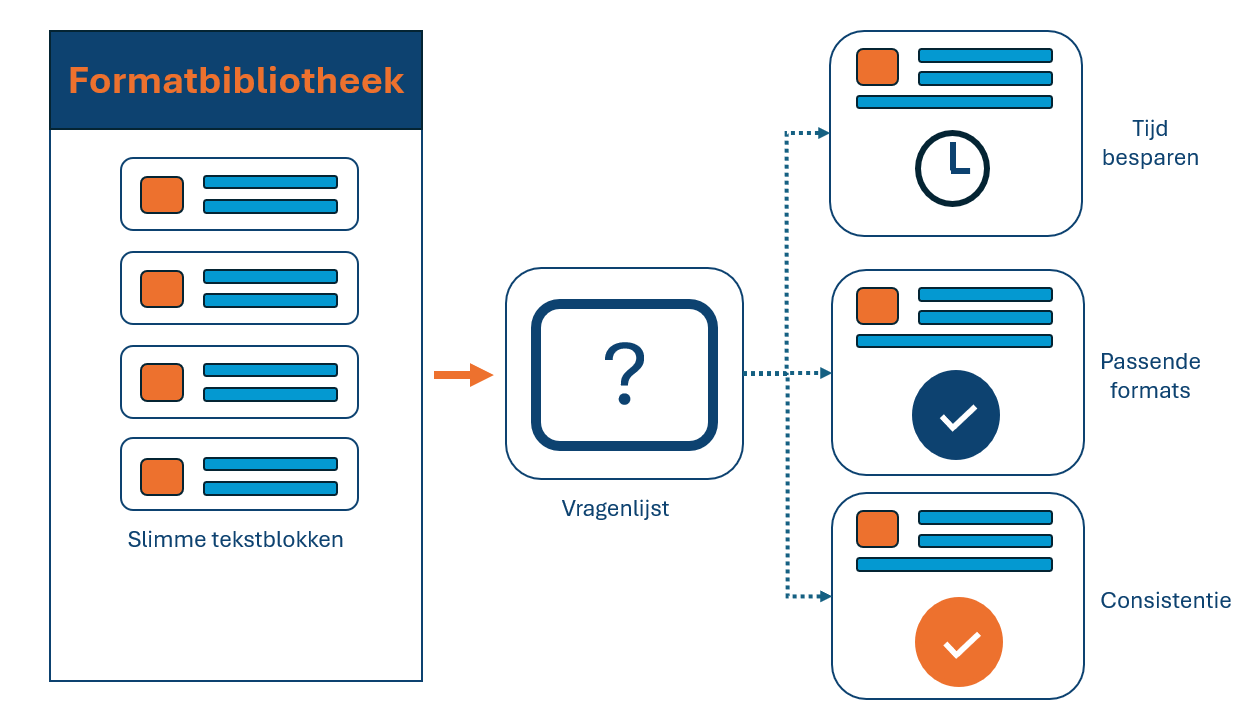 Bouw formats met slimme tekstblokken. Geef je team een vliegende start met hoogwaardige en consistente formats.